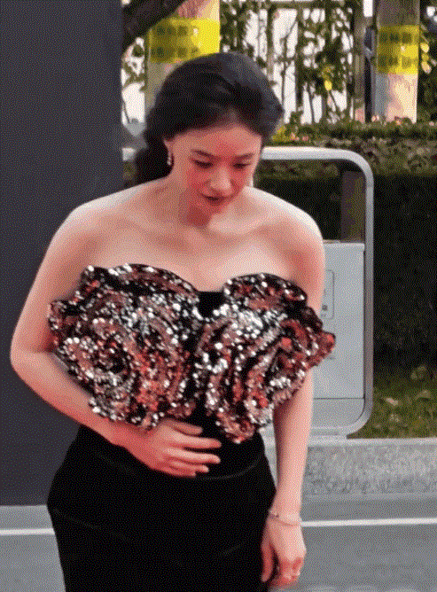 黑色亮片长裙勾勒出漂亮曲线,这身肉色薄纱是和晓彤有仇吗?明明健身照里瘦得像竹竿,